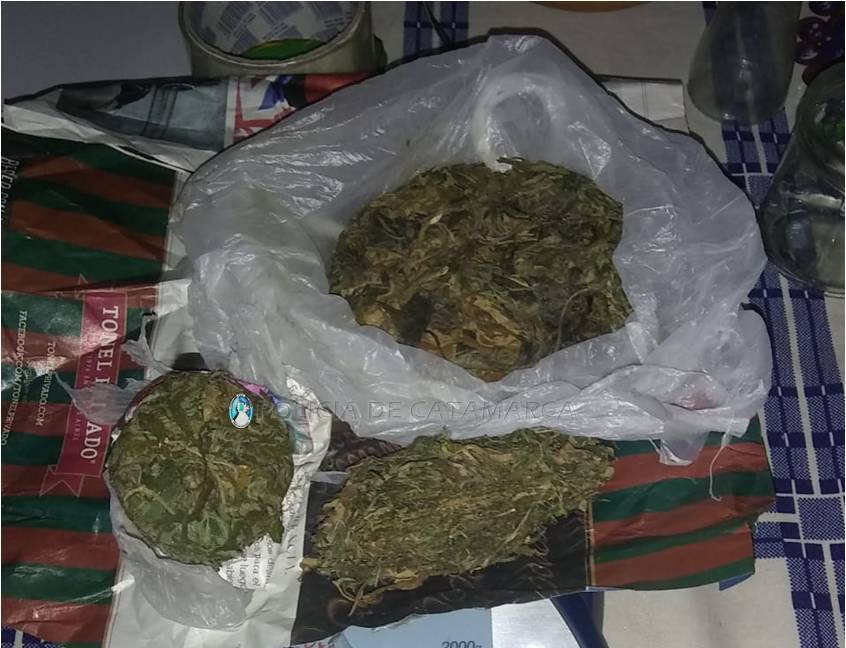 En el lugar, y bajo las directivas del Juzgado Federal, a cargo del Dr. Miguel Ángel Contreras, el personal policial interviniente secuestró un dólar estadounidense, la suma de diez mil quinientos treinta pesos ($10.530) en efectivo, discriminados en billetes de distinta denominación, dos (02) teléfonos celulares, dos (02) frascos de vidrio que en su interior contenían cincuenta y tres (53) cigarrillos de armado casero, acusando un peso de 18 Gr. de Marihuana, dos (02) envoltorios de nylon con cincuenta y cuatro (54) semillas de la variedad Cannabis Sativa, otros doce (12) envoltorios de nylon que contenían 214,3 Gr. de Marihuana y dos (02) plantines de Cannabis Sativa de 15 y 40 cm. aproximadamente.