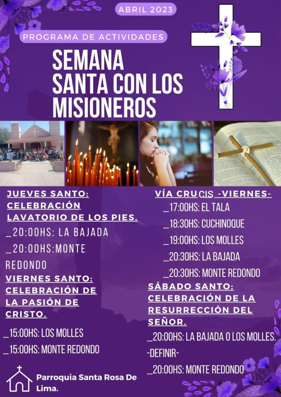 La parroquia San Roque invita a la comunidad a vivir la Semana Santa en familia, en la ciudad de Recreo, departamento La Paz.