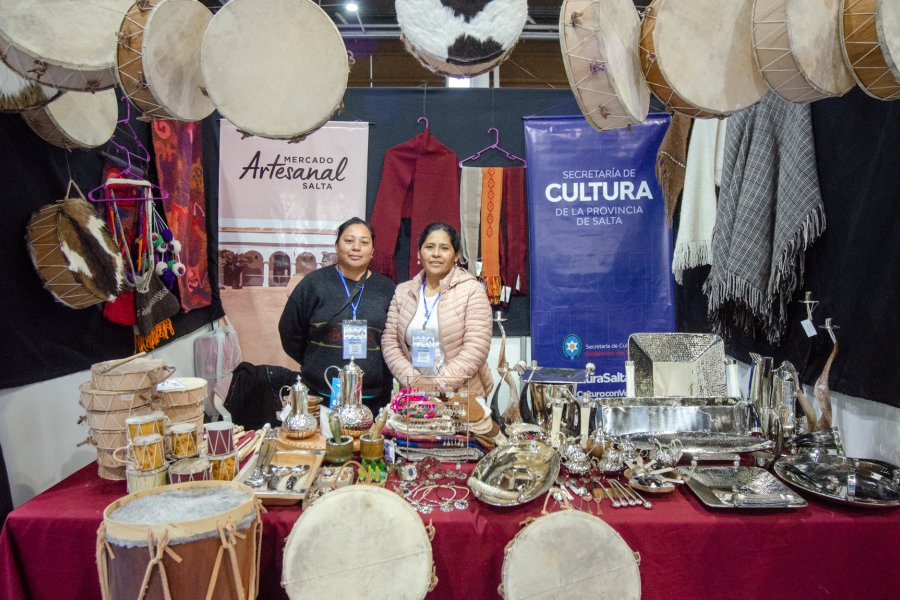 Verónica Chinuri Benitez, de la asociación Comunidad Indígena Colla Unidas, vino en representación del mercado salteño. Ella es oriunda de San Antonio de los Cobres y trajo sus trabajos realizados con alpaca y metales nobles. También se exponen instrumentos como bombos y cajas y textiles en llama y oveja, tapices y los clásicos ponchos salteños.