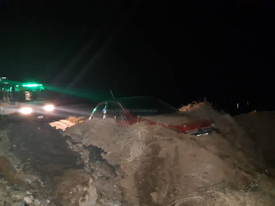 Por causas que se investigan, José Rodrigo Bazán (22), perdió el control de un automóvil Chevrolet Corsa rojo, dominio SDG-899, en el que circulaba y chocó contra un montículo de tierra que estaba en la calzada, para impedir la circulación por el lugar.