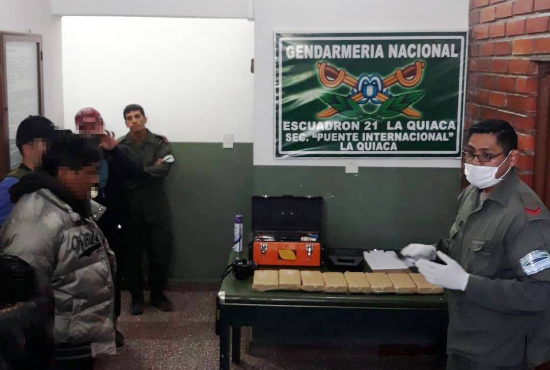 Gendarmería Nacional, que depende del Ministerio de Seguridad de la Nación, detuvo a un hombre que trasladaba 8 kilos 587 gramos de cocaína adosados a su cuerpo. El hecho tuvo lugar en el Paso fronterizo La Quiaca- Villazón (Jujuy- Estado Plurinacional de Bolivia).