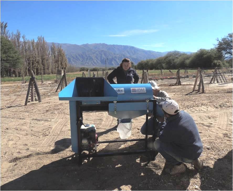 A fines de mayo, el INTA Famaillá y la Fundación Miguel Lillo pusieron a disposición de los productores de quínoa una trilladora adquirida con fondos del proyecto “Aplicación de tecnología para producción de quínoa para alimentación y generación de un mercado de semillas en la Comunidad Indígena de Amaicha del Valle Tucumán. Éste es financiado por el Consejo Federal de Ciencia y Tecnología (COFECYT) del Ministerio de Ciencia, Tecnología e Innovación Productiva; y coordinado por los Dres- Luis Erazzú (INTA) y Juan González (Fundación Miguel Lillo).
