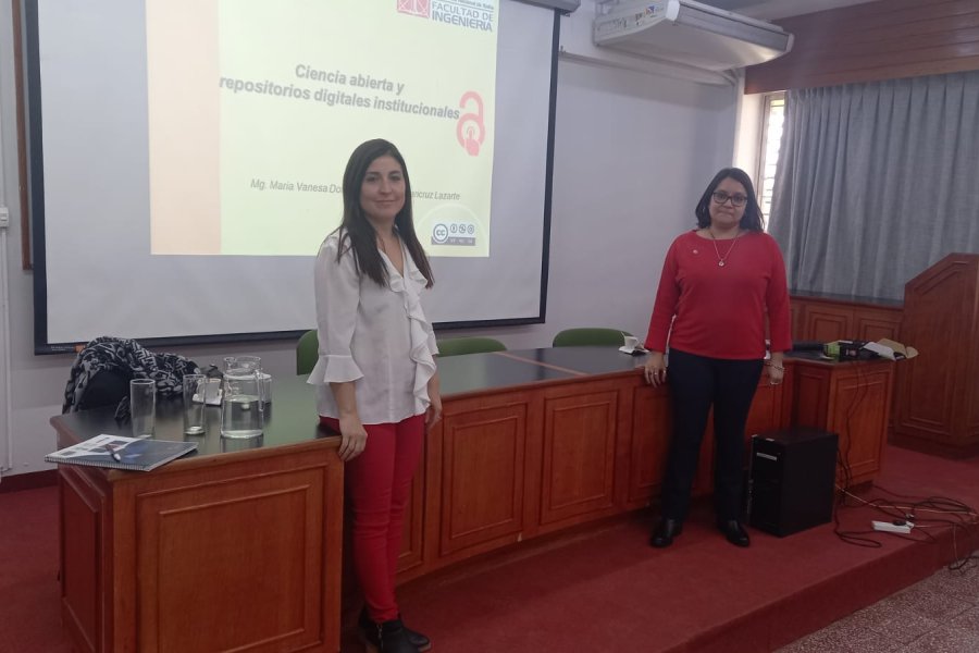 “Los repositorios son herramientas que permiten gestionar, acceder y visibilizar la producción académica, científica y tecnológica resultado de investigaciones con fondos públicos; forman parte del componente acceso abierto dentro de la ciencia abierta, que sostiene que la producción debe estar disponible a toda la sociedad para incrementar su uso e impacto”, explican Vanesa Doria e Ivanna Lazarte, docentes de la Facultad de Tecnología y Ciencias Aplicadas de la UNCA, ambas a cargo de la conferencia que dictaron en Salta.