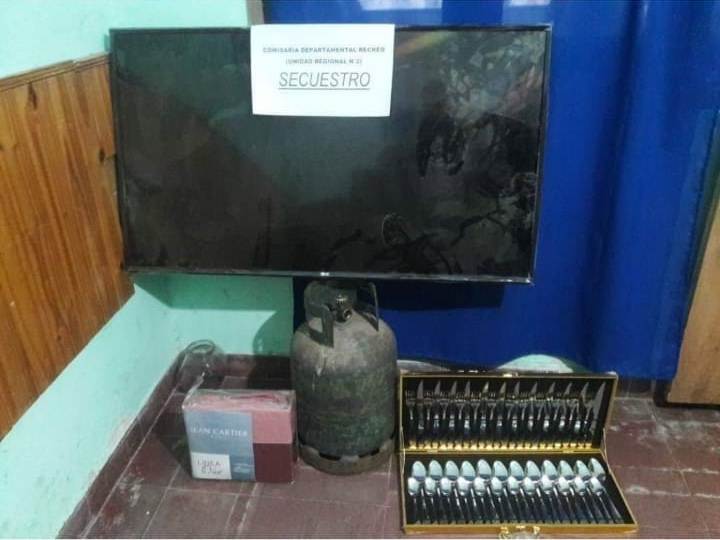 Según fuentes recreinas veraces, la policía recuperó los elementos sustraídos aunque no lograron ubicar el dinero faltante. Se trata de un televisor Led de 55 pulgadas, un juego de cubiertos, una garrafa de gas de 10 kilogramos y un juego de sábanas, todos propiedad de la familia Ahumada.