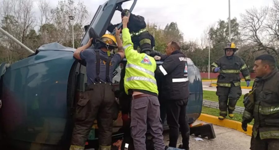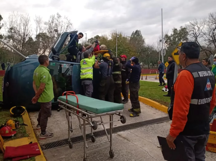 En las imágenes que posteriormente se viralizaron se puede ver la dramática escena. La mujer quedó atrapada dentro del auto y rápidamente personal de Defensa Civil y de los Bomberos Voluntarios de Lanús debieron asistir al Centro de licencias para socorrerla.